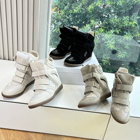 รองเท้าข้อสูงสไตล์ยุโรปอเมริกันสำหรับผู้หญิง2025ฤดูใบไม้ร่วงฤดูหนาวรองเท้ากีฬาแบบสวมสวมหนังแท้แบบลำลองเพิ่มความสูงที่มองไม่เห็น